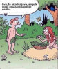 No, in potem, da bi Adam ne bil tako sam (!!! slišite, moški, ki vam je odveč kdaj zgovorna žena, ženo vam je Bog podaril, da vi ne bi bili osamljeni!! :) ), je Bog ustvaril še Evo. Spomnil se je spet nekaj prav posebnega: Evo je naredil kar iz Adamovega rebra (hehe, in to v spanju!! Moški, kaj vse se vam dogaja, ko spite!! :)) ) Hmmm, kaj ni to že začetek kloniranja? ;) Eva je - izpopolnjen - Adam? ;)