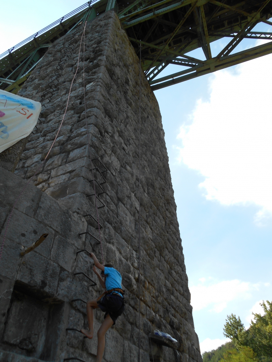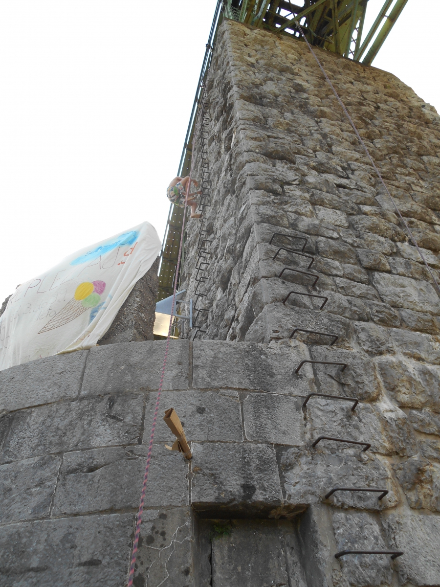 Človek kot pajek - plezanje po železniškem mostu