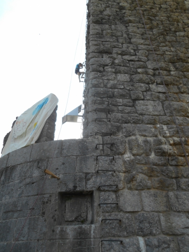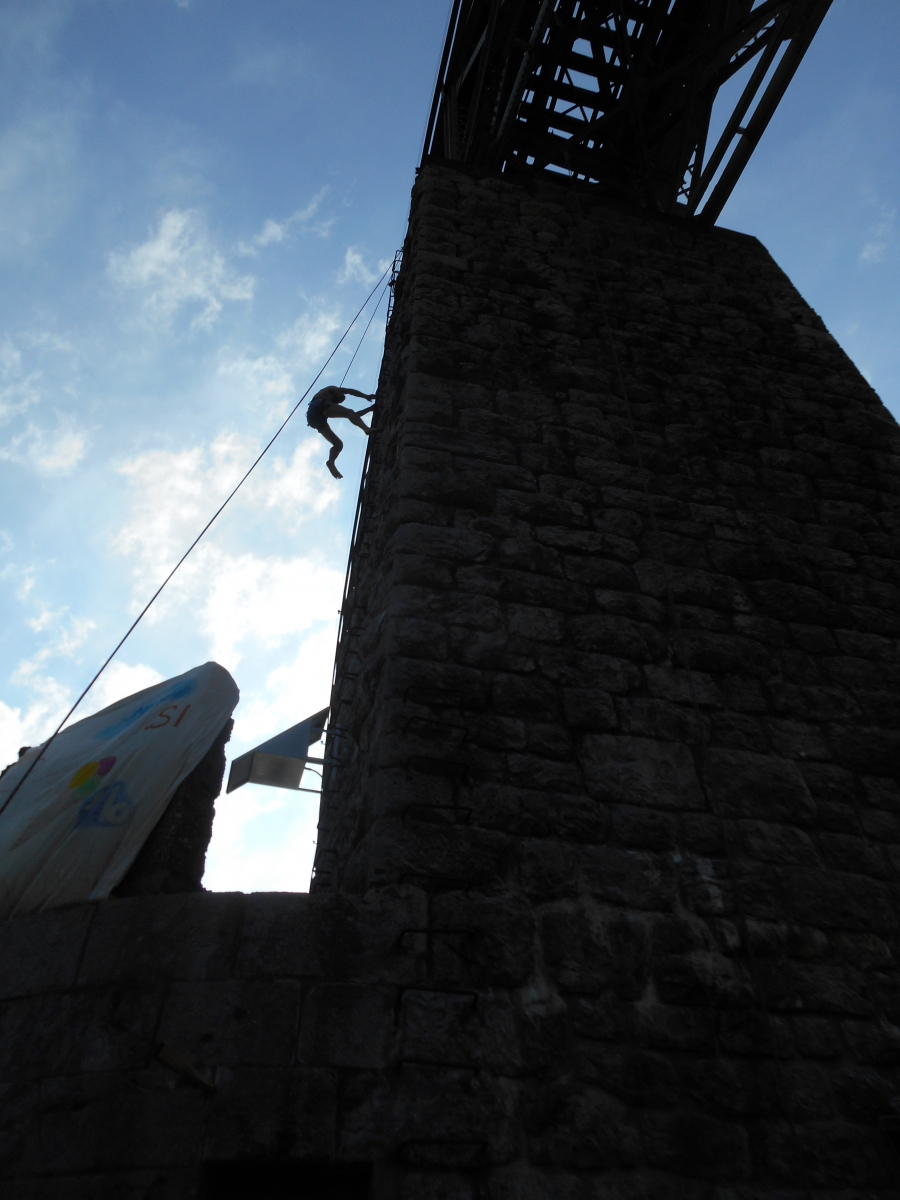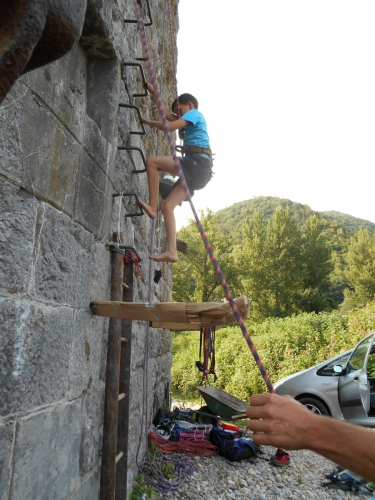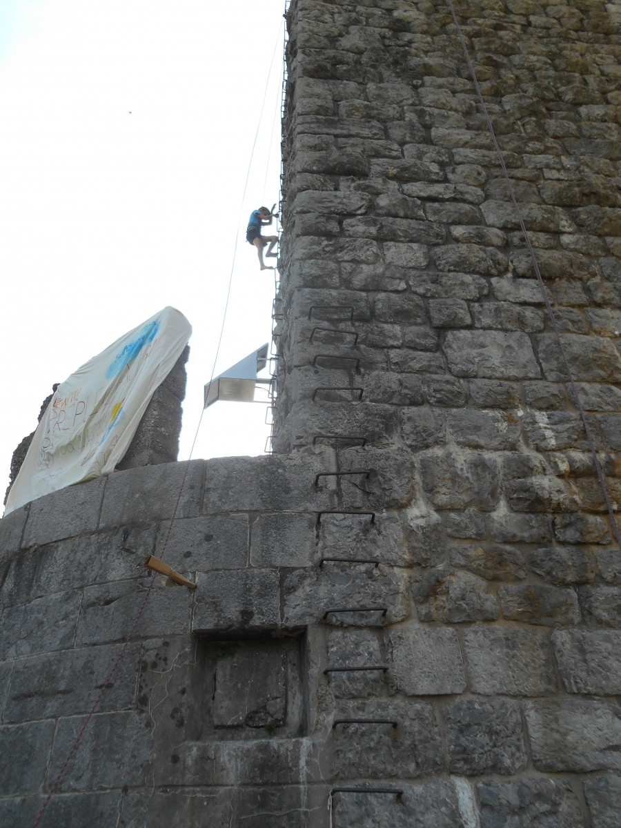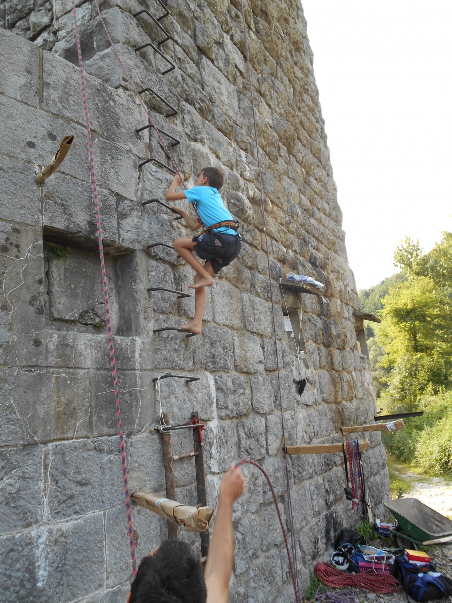 Potem je Peter Mrak vodil igre, hojo po vrvi in plezanje; tega zadnjega (delala sta pa dva) so se udeležili tudi trije moji moški :) Evo jih! :D