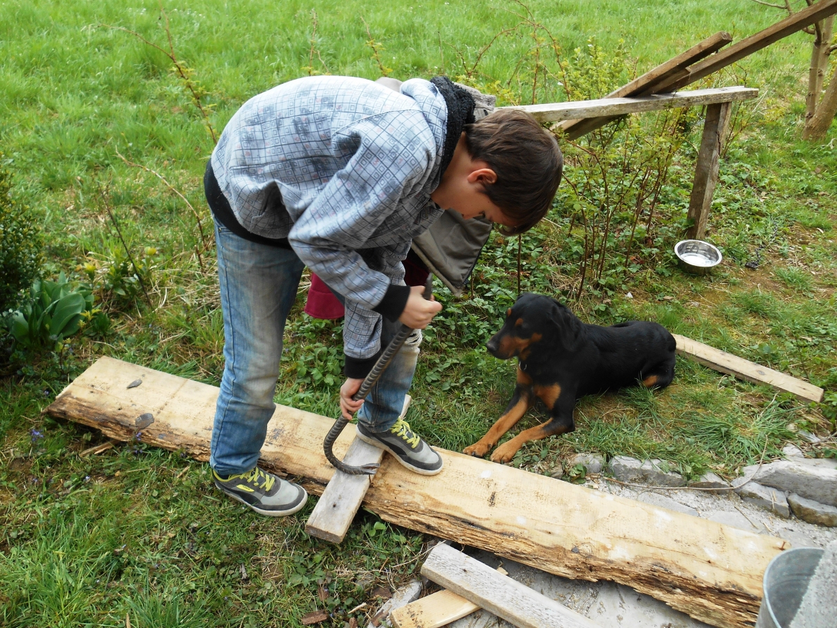(Iščem fotko za ilustracijo - in najdem res primerno! Sin iz desk puli žeblje!)