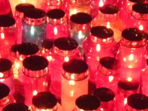 A se je zgodilo, da sem bila tam opolnoči in ravno pomislila sem na uro - polnoč ("ura strahov") in prav tedaj sem zaslišala "tok tok tok". Joj, kako me je postalo groza ... A sem na srečo kmalu ugotovila, da je začelo deževati in so kapljice toktokale po kovinskih pokrovčkih prižganih sveč ...