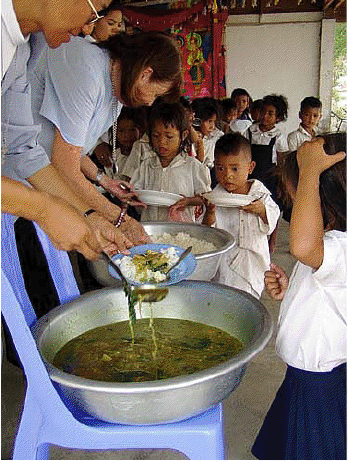 Iz pisma s. Ljudmile iz Kambodže neki naši šoli, kjer zbirajo otroci denar prav za Kambodžo: »Zares sem vesela, da ste se spomnili prav na nas! Trenutno imamo v vrtcu 276 otrok v 6 različnih skupinah, starih 3, 4 in 5 let. Ko so stari 6 let, gredo v 1. razred naše osnovne šole. Otroci so po večini iz revnih družin. Mnogi starši so mladi priseljenci s podeželja, ki so prišli v mesto iskat službo in boljše življenje. Njihovo življenje je težko. Zaslužek je majhen in zelo negotov. Cele družine živijo v eni sami sobi. Otroci so v vrtcu cel dan in dobijo pri nas tri obroke. Riž je naša glavna hrana in tisto, kar napolni krožnik vsakega otroka. Vsakega prispevka bomo zelo veseli in ze vnaprej hvala otrokom in seveda njihovim starsem in vzgojiteljem.«