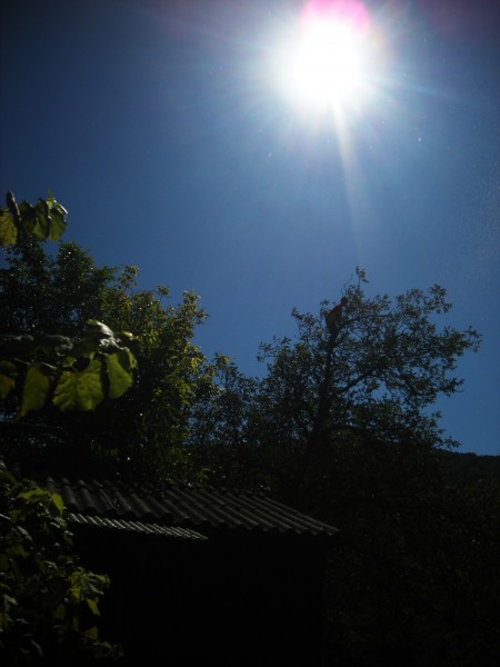 Ko sem sinu rekla, naj mi gre pomagat, ko sem delala na vrtu, je rekel, da je takoooooo vroče! Da ne more. In se je šel hladit, češ da je višje zrak redkejši! ... ;)