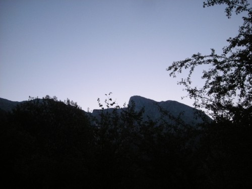 Medtem je nastala že črna noč. Mož je pohitel naprej, hitro mi je izginil izpred oči. Ampak zdaj je bilo vse na tipanju. Skale so bile mokre in mrzle, zajla tudi, klini tudi. Vse je bilo potrebno potipati, nobenega koraka nismo smeli narediti kar tako.