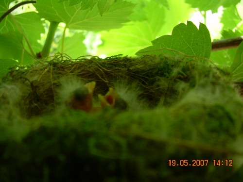 Pa še nekaj slikc gnezda, ki smo ga pred leti mi opazovali, bilo je na naši balkonski ograji ... tik pred nosom torej ... dočakali smo mladičke ... a potem je prišlo nekaj vmes, morda prehudo neurje (gnezdo je bilo sicer v brajdi, vendar pod kapjo), morda sosedovi mački ...?