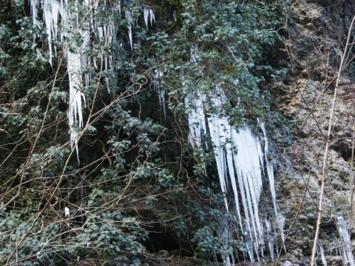 Hodila sem po cesti (po Baški grapi) v ledenem dopoldnevu in občudovala! Neverjetno, koliko sveč! Visele so od vsepovsod!