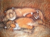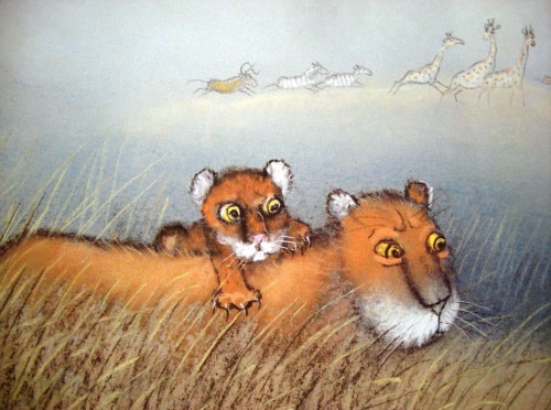 Mamica si skrbo ogleda nogo in vidi, da mu nič ni. Vendar ve, kaj manjka Hugu, poboža ga in stisne k sebi. Tako ležita oba levčka skušaj v njenem naročju in dremljeta.