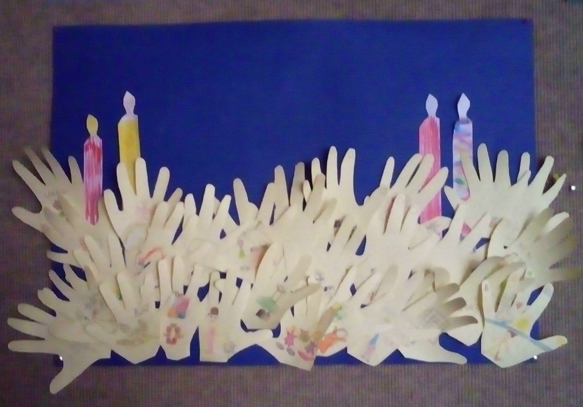 Dodajam naš adventni plakat ... Skušajmo delati (z rokami) samo dobre stvari: po/klicati (Boga), pobožati, objeti, pomahati (pozdraviti).