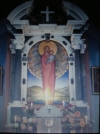 Slikca prikazuje Marijo in Dete v cerkvi na Mengorah nad Volčami.