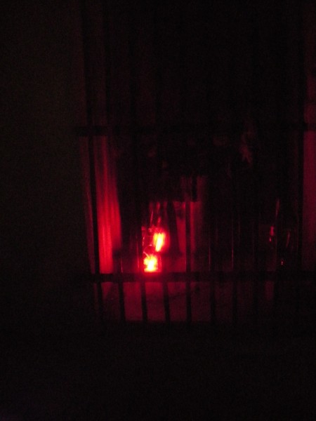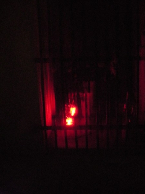 Zavijem na pokopališče, se hitro sezujem, da sem bolj tiha, in tečem s čevlji v rokah naprej. Zginem za mrliško vežico. Ne upam se ustaviti. Sklonjena tečem naprej ... že sem zunaj pokopališča in pred našo hišo gori luč ... pa zakaj, le kdo jo je prižgal, nikoli ne gori luč tukaj!!! ...