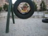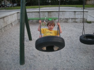 Z najmlajšim sinom prideva do igrišča s toboganom.