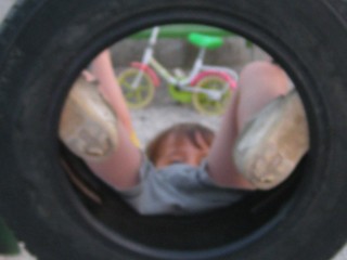Spusti se z gugalnice in že zleze na kolo ...