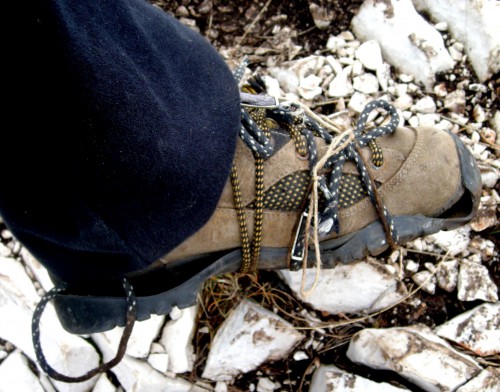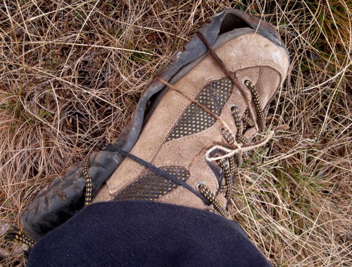 A to, ali so moji planinski čevlji v avtu ali ne, je kar naenkrat postalo zelo pomembno. Ko sem namreč v Ajdovščini lezla iz avta, sem ugotovila, da se podlat enega čevlja drži samega čevlja samo pri prstih, medtem ko je ves ostali del odstopil ...