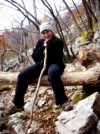 Pred kočo na Nanosu: Prijazno dekle v koči nama da dolg konec močnejše špage in ... najbrž še nikoli doslej ni nihče tako lepo in tako pogosto - oskrboval mojih dveh nožic!