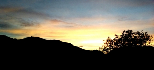 Jaz, ki nisem tako zelo delavna, pa tudi zdaj kdaj posedim in samo gledam ... Gledam sonce, ki tone za hribe ... tja v Italijo gre ... Koliko kasneje zaide sonce v Italiji ... aha, v Litaliji, tako so govorili naši otroci ... Litalija ...