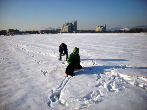 Včasih se odločim, da brez besed čakam ob njem ... in štejem "čas", dokler se le ne odloči in skoči ... Čakam, ker me zanima, kaj bo naredil, ali se bo skušal izmuzniti, ali bo vendar naredil, kar mora, tudi če ga ne opozorjam in opozarjam. In on stoji in čaka. Potem enkrat se le pripravi, da bo skočil ... In skoči. Je kot počasen posnetek.