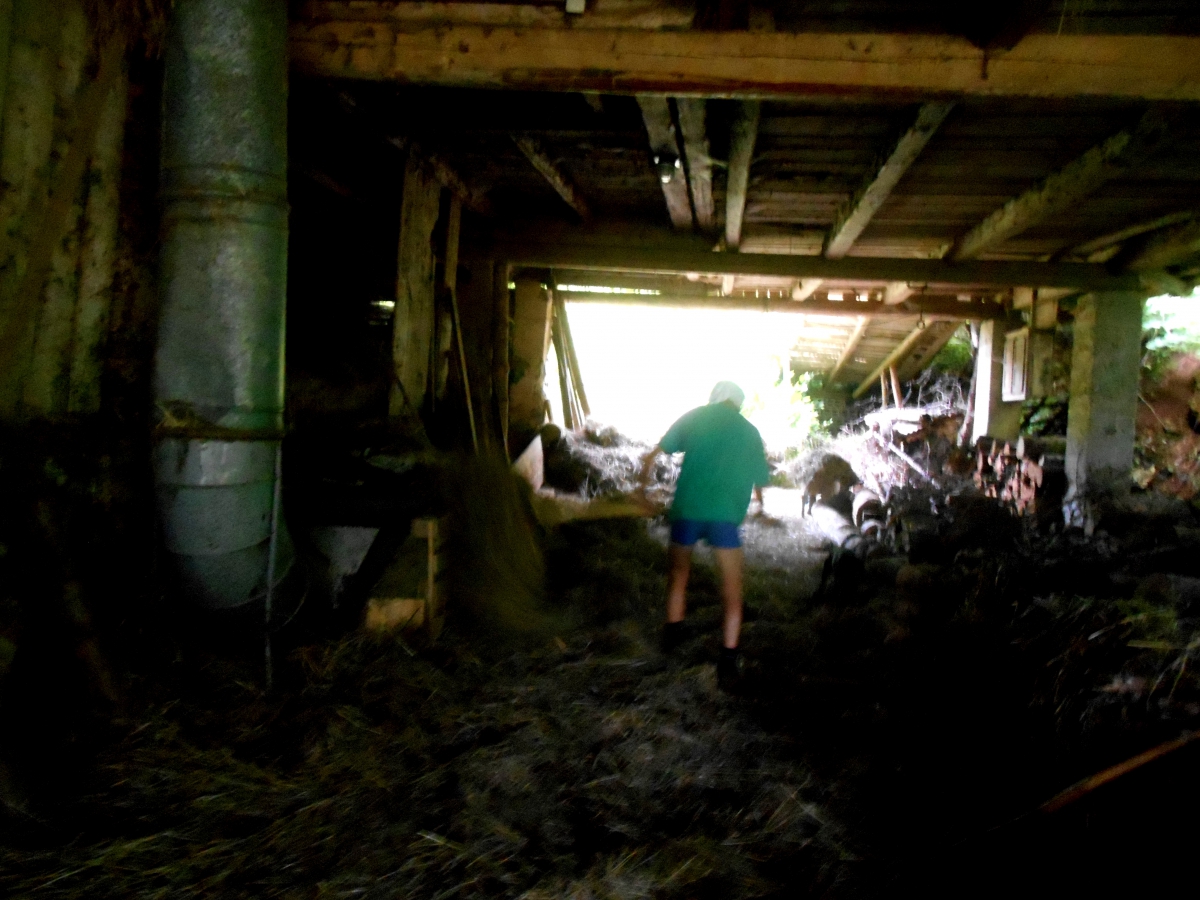 Za hlevom nas čaka nakladalka sena, te nismo zmetali prejšnji dan.