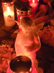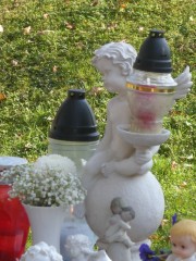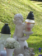 Vedno me pretrese, ko grem tja. Toliko pristne žalosti je tu. Toliko čiste nežnosti. Toliko ljubezni je čutiti tudi v igračkah (medvedkih, avtomobilčkih), ki jih ljudje tukaj pustijo, pa v kipcih predvsem angelčkov, ki najbrž večini od žalujočih za malimi otroki predstavljajo izgubljene otroke. Mala bitja, ki so kot angeli ... ki so kar nekako odleteli ... Male dušice, ki so zapustile nebogljena telesca.