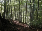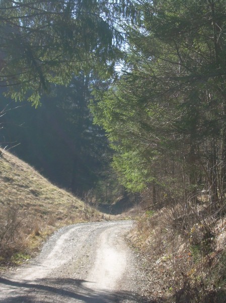 Deklica jo ubere po drugi poti, da je sosed ne bi videl. Hitro se spusti skozi gozd do potoka po neki stezici, ki se komaj sluti, in potem se nekaj časa skrivaj za grmovjem ob potoku spotika proti hiši, kamor mora priti. In potem previdno na cesto, ko po potoku ni več mogla nadaljevati poti ...