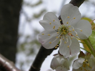 Z M. sva zunaj. Opazi belega kužka.