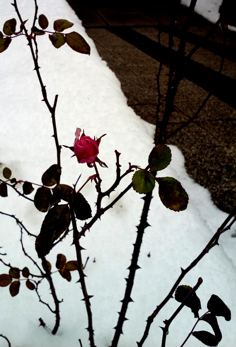 sneg in mraz sta okrog nje,