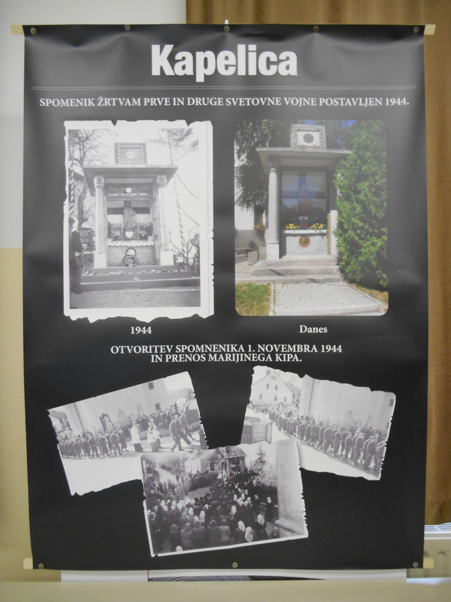 Okrog 600 - 700 ljudi je bilo na spravni slovesnosti ob 70 letnici postavitve kapelice žrtvam 3 vojn in 4 udeleženih strani. Slovesnost se je pričela z mašo pred kapelico. Ljudi je bilo približno toliko kot jih je bilo leta 1944 ob otvoritvi kapele. Gre za spravno kapelo, ki so jeseni leta 1944 postavili domobranci. Spravna kapela je imenovana zato, ker so v njej na istem mestu vpisane skupaj z vaškimi stražarji in domobranci tudi žrtve partizanov. To je edinstven primer spravnega obnašanja že med vojno, kar pa je bilo vseskozi zamolčano.