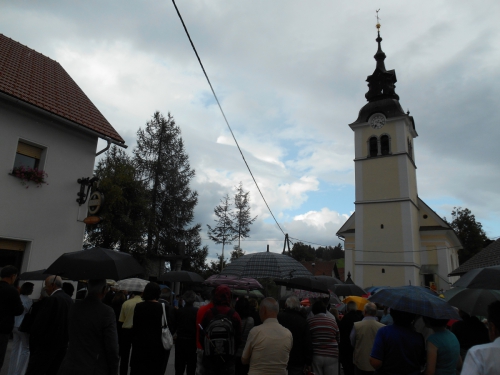 Dež nas je proti koncu maše pregnal v cerkev, kjer se je potem po maši odvijal lep kulturni program, poleg glavne govornice gospe Valič Zver so govorili tudi logaški župan, Peter Sušnik kot predsednik Nove slovenske zaveze, ameriški veleposlanik Mussomeli, poleg povezovalke so res lepo peli domači zbor (morda zbor z malo večjega območja?), Marko Fink (med mašo psalm - Čisto srce, o Bog, mi ustvari) in dva avstroogrska vojaka (dve pesmi) - v uniformi, kakršno je nosil tudi Rudolf Maister, eden je igral na harmoniko, drugi pel.