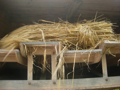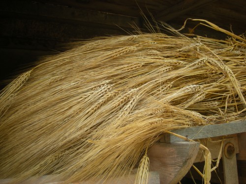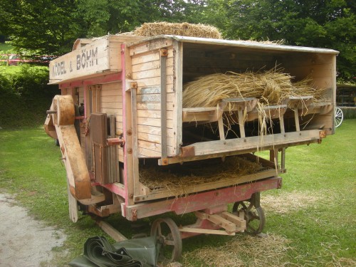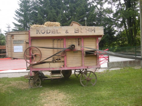 Fotografije mlatilnice in žita so bile posnete enkrat na praznovanju "dneva pod Lovrencem" v Polhovem Gradcu