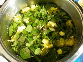 Dober je tale sirup! Naredim ga podobno kot iz bezgovega cvetja, le da uporabim razne dišeče in zdravilne rožice iz vrta ali travnika ali gozda, npr. meto, meliso, materino dušico ...