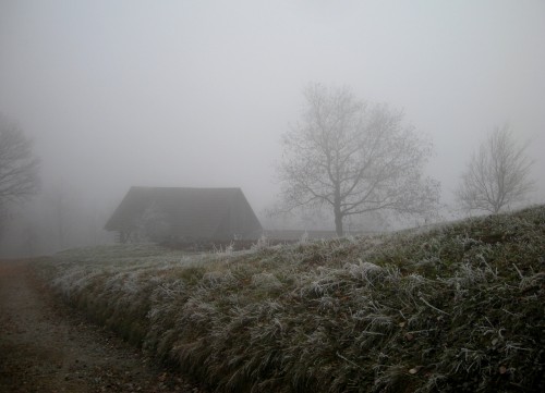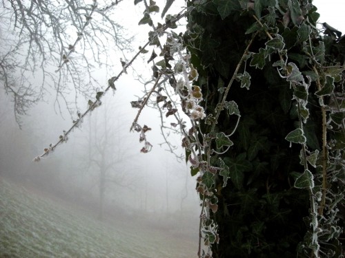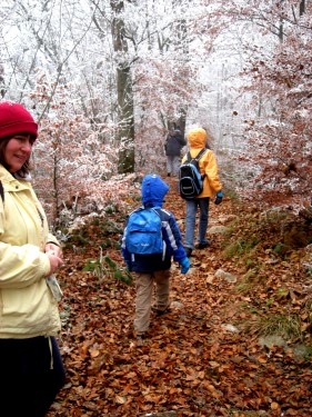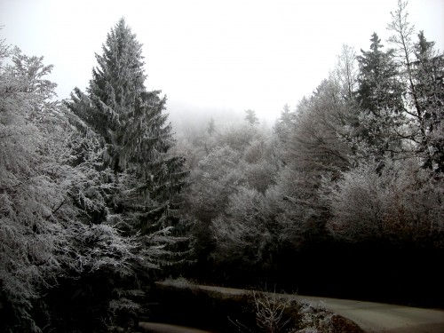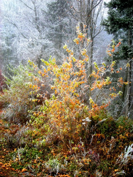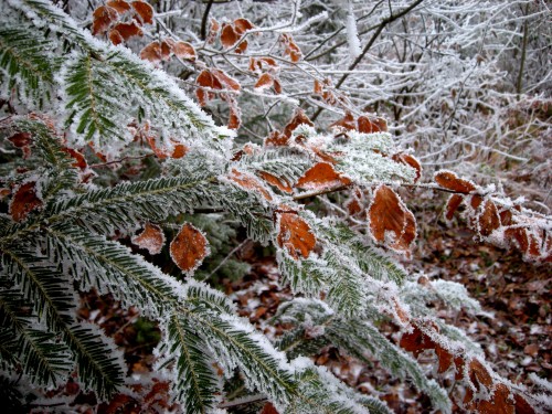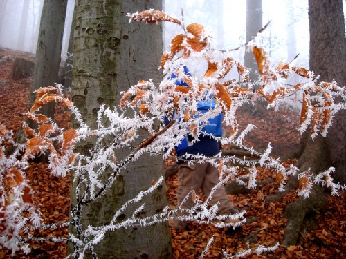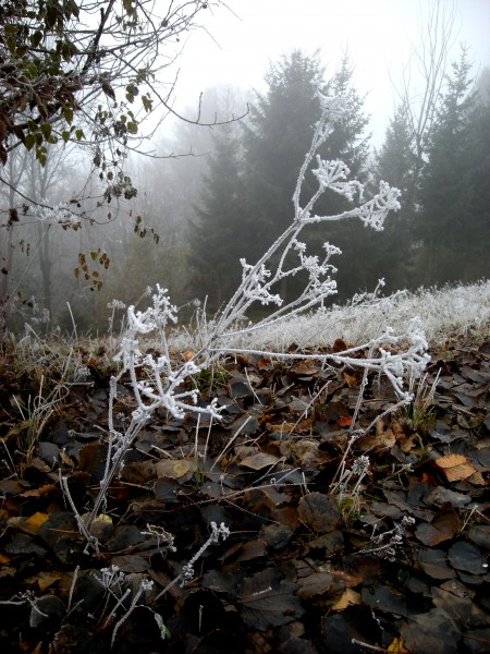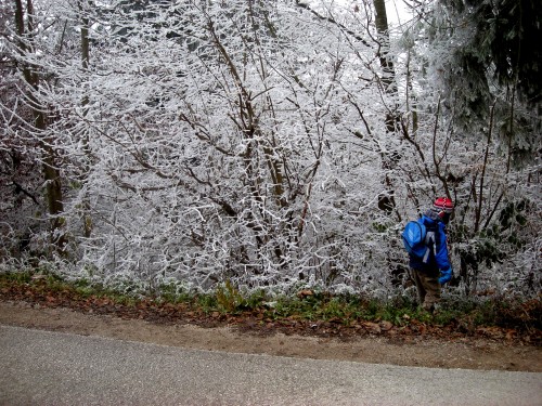 in že smo spet v hladni sivini in ivju. Pozdravlja nas lepota gozda, je neizmerno lepo, ustavljamo se in opazujemo belo okrašene liste, vejice ...