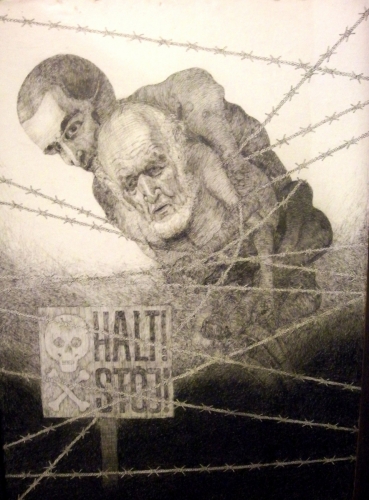 Marian Kolodziej je veliko let po vojni, začel je šele l. 1993, za svojo terapijo risal, slikal ... Vrstijo se sami taboriščni prizori.