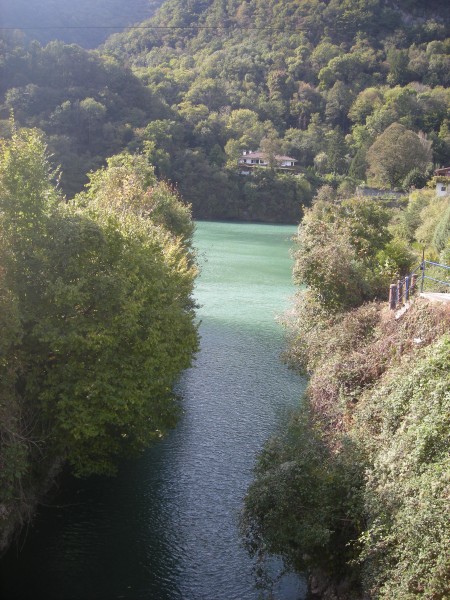 (Sem na mostu čez Idrijco, na Mostu na Soči, še malo, pa se bo Idrijca izlila v Sočo ... in ponosno ime reke prevzame Soča! Na neki drugi fotki se tam pod gozdom jasno ločita različni barvi dveh rek!)
