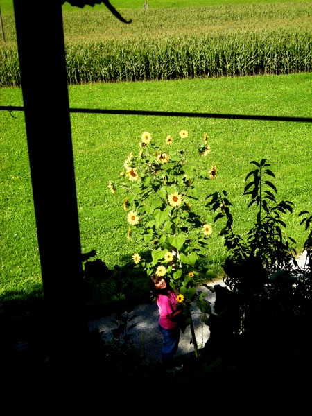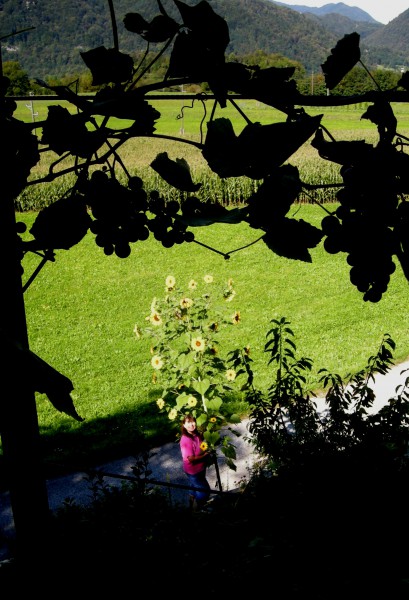 Kako tale sončnica spominja na Kosovelovo otroško pesmico Nesem sončnico na rami! Bi jo kar odnesla na rami in delila sonce!