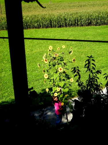 Takole cveti ena "mojih" sončnic! Letos jih ni poln vrt, in nobena se ni razrasla takole kot se je tale na sp