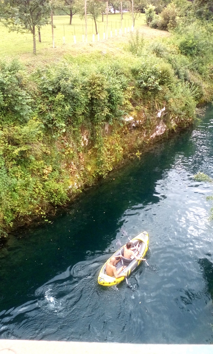 Naš pes seveda spet plava, toda zaman, veslača veslata proti Tolminu mimo pritoka Tolminke in še nekaj časa, dokler je bila za čoln dovolj globoka voda ...