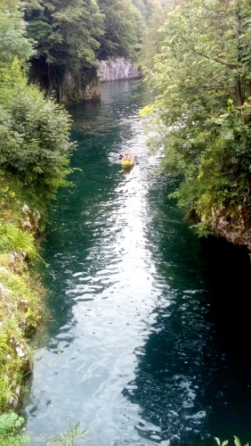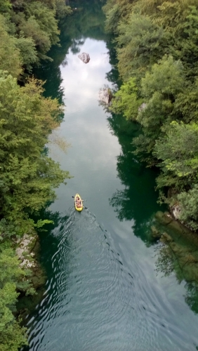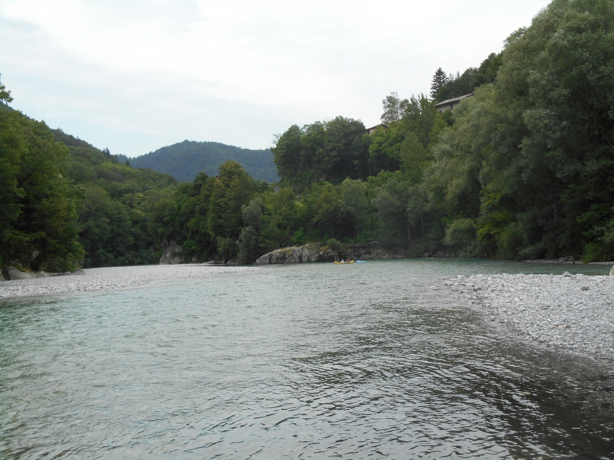 Še malo in že priveslata do sotočja Idrijce in Soče in potem po Soči proti toku.