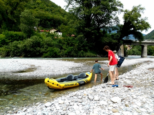 Odnesli smo čoln kakšen kilometer daleč do reke ... Do sotočja Idrijce in Bače.