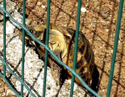 Enkrat, nekega vročega dne, sem šla mimo nekega vrta in opazila želvico na betonskem robniku ob ograji. Pomislila sem, kako je mogoče, da je želva tam gor! Le kako je prišla? Ogledala sem si ves robnik, nikjer ni bil čisto pri tleh.
