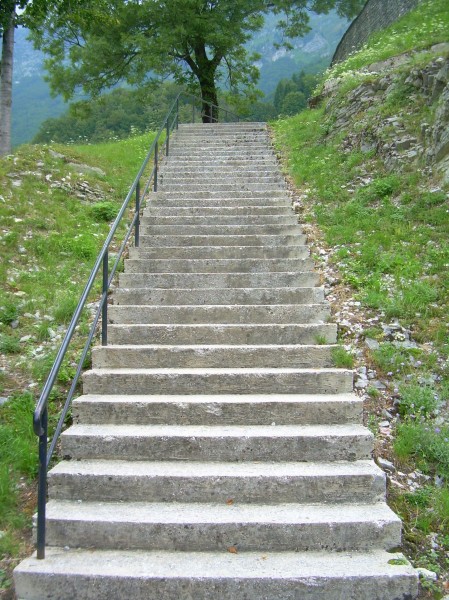 Lahko zdihujemo zaradi strmega klanca, lahko pa smo hvaležni za stopnice in ograjo ...