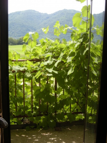 Tale pogled iz moje (no, najine!) sobe na Primorskem me vedno razveseli, lahko bi pa pojamrala, kaj vse pri hiši ni narejeno!