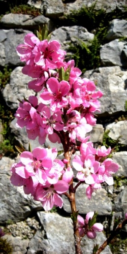 Vrt se budi iz zimskega spanja, vse barviteje spet diha ... Tole je vinogradniška breskev, zrasla je iz koščice, ki smo jo sami posadili v