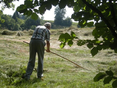 Zjutraj grem "naredit en krog" s psom. Ko greva po travnati stezi in povprek čez pokošene travnike, se sezujem. Oooo, kakšen hlad! Rosa, ki kar zareže v noge.